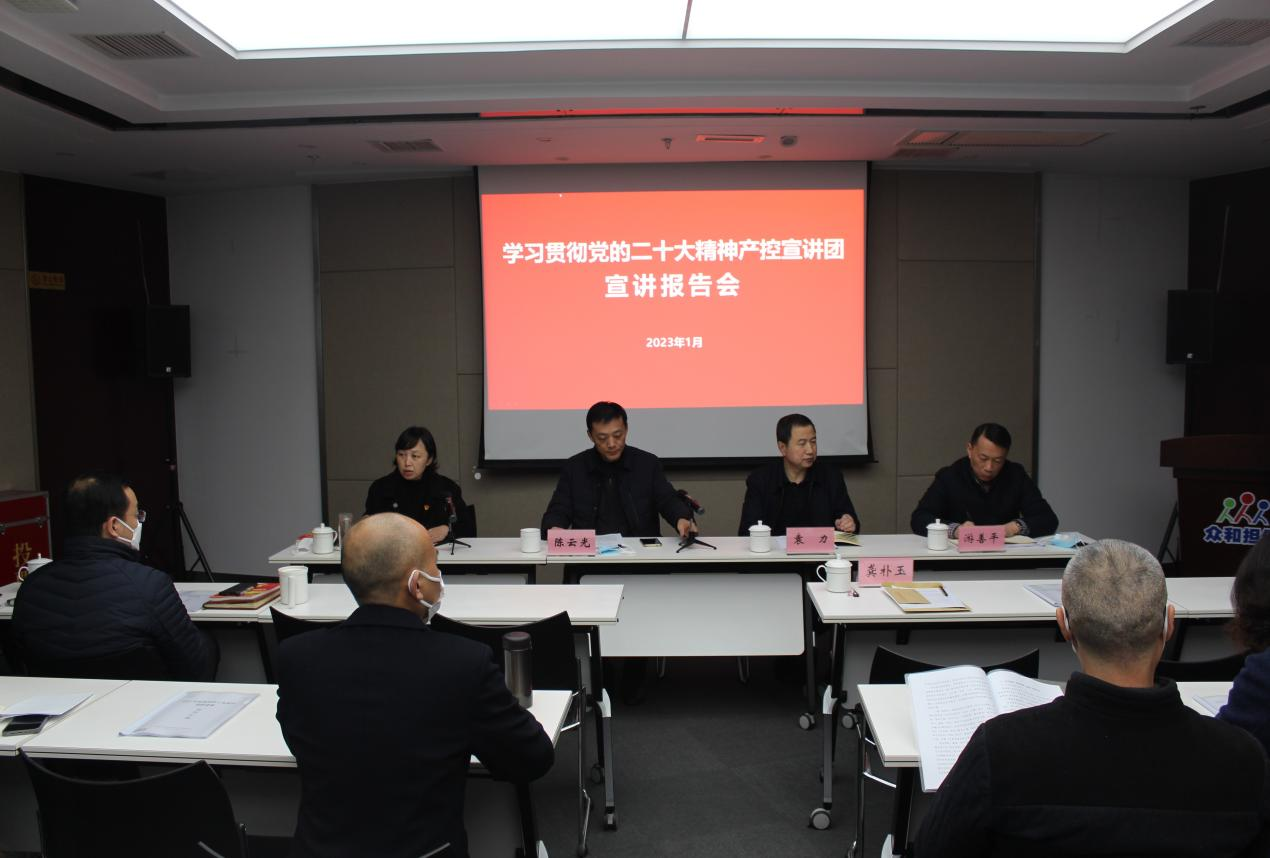 根據產控集團部署要求,為深入學習宣傳貫徹黨的二十大精神,1月14日下午,產控集團黨委委員、副總經理陳云光、紀委副書記游善平一行走進眾和擔保開展黨的二十大精神集中宣講。公司領導班子成員、中層干部及員工代表共計30人參加宣講報告會。